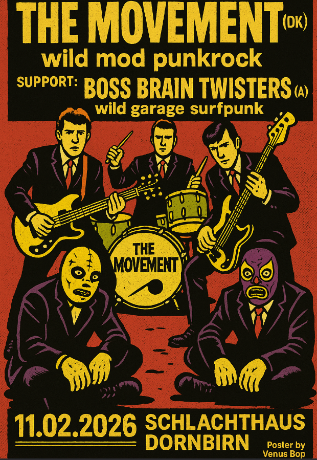 The Movement (DK) Sie sind ein Power-Trio aus Kopenhagen, geprägt vom Sound und der Attitüde von The Jam, The Who und The Clash. In scharfen Anzügen und mit dem Mod-Ethos „Clean Living Under Difficult Circumstances“ verbinden sie Stil mit Haltung. Ihre hochenergetischen Liveshows verwandeln Bühnen in Bewegungsräume – direkt, intensiv und kompromisslos. Gleichzeitig verstehen sie […]